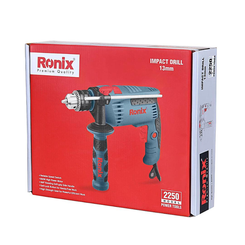 The Ronix 2250 Corded Impact Drill, 850W, 2Kg’s complete metal and robust keyed chuck can accommodate drill bits up to 13mm in diameter. The full-metal keyed chuck increases drilling security and lowers the risk of injury. The 13mm chuck allows the user to drill holes of various sizes in a variety of workpieces, including steel, wood, and concrete.