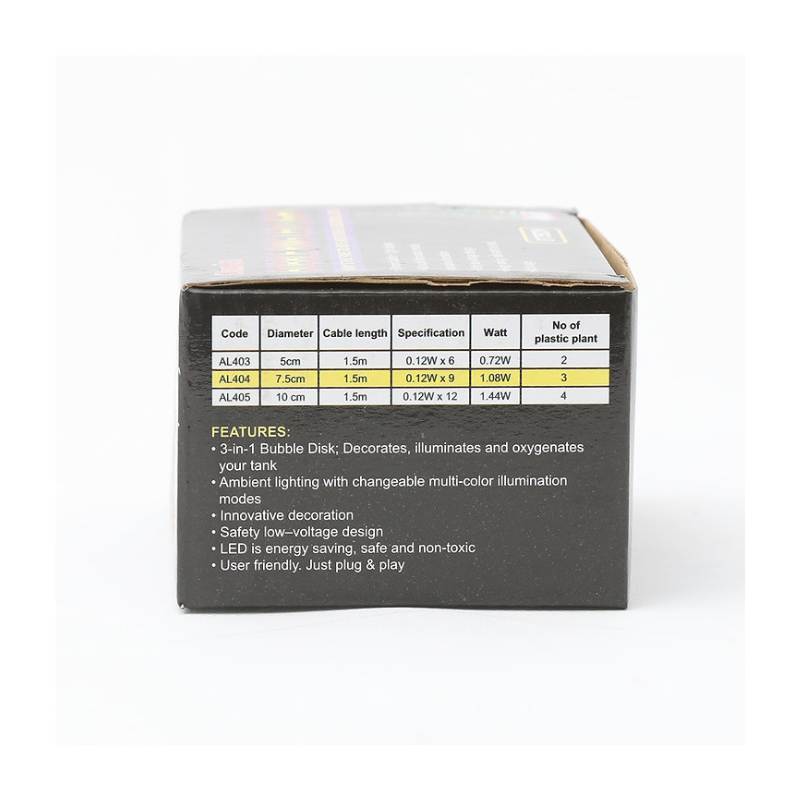 Bring your aquarium to life with the classica bubble wall with built in underwater led light. Not only will it provide vital oxygen to your tank, the led lights will create an amazing display as bubbles rise up to the surface of the tank through the led lighting. Create your own light show with 7 different colours across the 7 different colour modes.