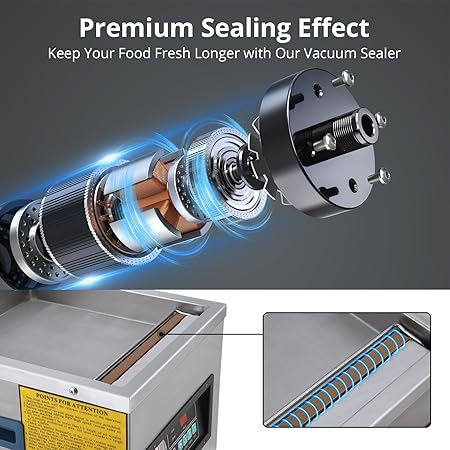 • Stainless Steel Structure: This vacuum seal is made of stainless steel, durable, safe and easy to clean. In addition, it is also equipped with a transparent organic glass lid with explosion -proof function, which makes the vacuum and seal process visible to users.