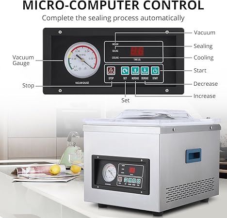 • Extensive Application: Our chamber vacuum sealer machine is widely used in family, supermarkets, hospitals, which is convenient for various fruits, meat, and medicines for vacuum treatment.