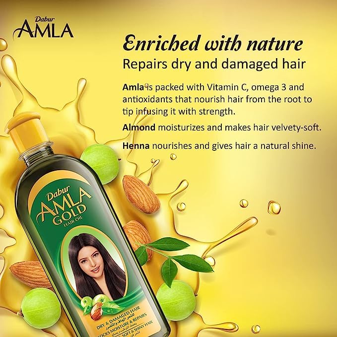 - FOR LONG, SOFT, AND STRONG HAIR: Dabur Amla Gold Hair Oil was created with all hair types in mind. This hair oil is enriched with pure Amla extracts, nourishing oils, and vitamins that help to nourish the scalp, prevent hair fall, and strengthen the hair strands from root to tip to give you thick, long, and lustrous tresses.