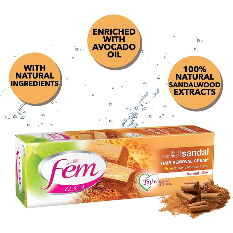 Dabur Fem Hair Removal Cream,for Normal and Dry Skin, Skin Rejuvenating, 120g Sandal Wood