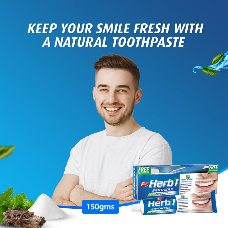 • NATURAL TOOTHPASTE. Dabur Herbal Smokers Toothpaste is formulated with a unique blend of specialized herbs that covers all common segments of dental care