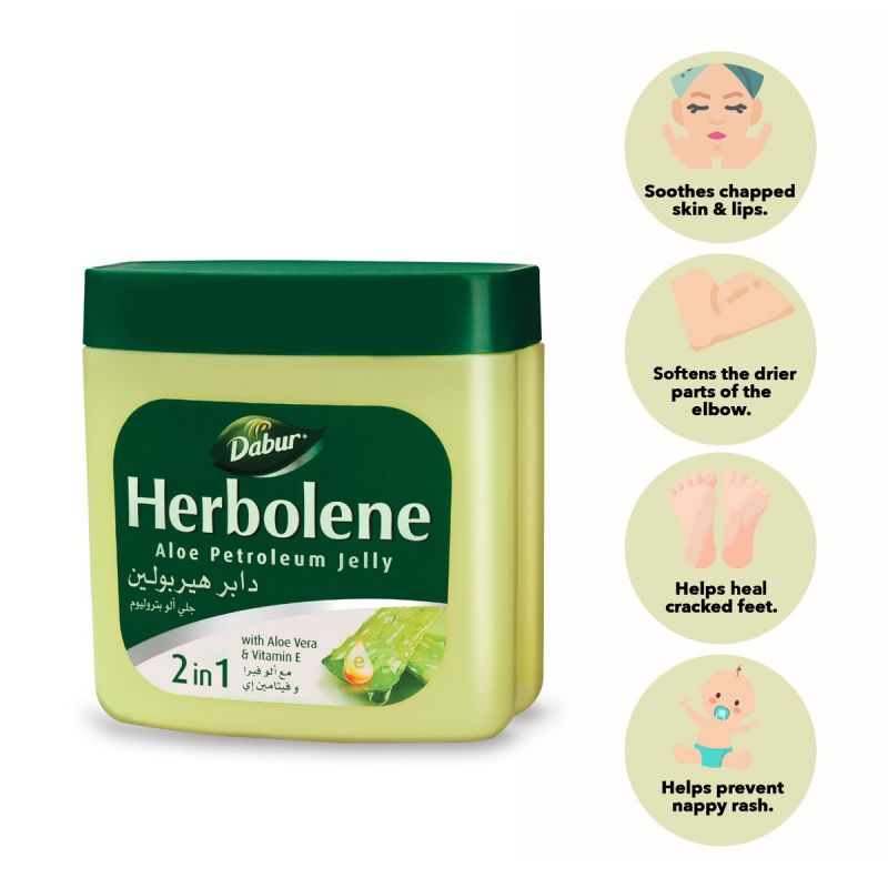 Dabur Herbolene Petroleum Jelly Enriched with Aloe Vera and Vitamin E, For Dry and Rough Skin 115ml Aloe Vera (Pack of 3)