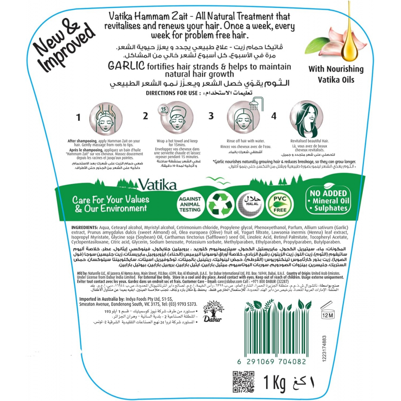 Be the first to review “Dabur Vatika Naturals Hair Mask – Natural Solution for Deep Conditioning – Nourishing Hair Mask for Dry, Damaged Hair – Revitalize and Rejuvenate for Weak Breaking Hair – With Garlic Extracts 1KG Garlic (Pack of 3)”