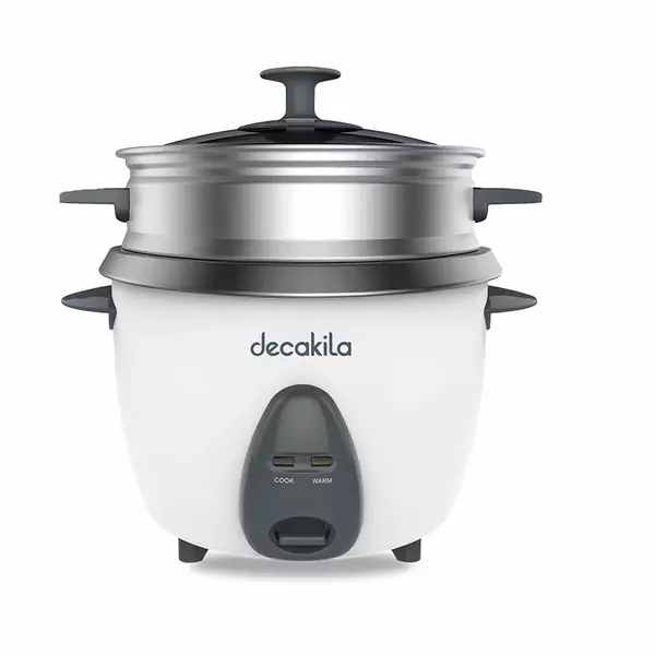 Decakila Rice Cooker 2.8l Keep Warm Function Nonstick Coated Pot 900w Keer035w 15 cups with spoon, measuring cup and aluminium steaming basket single side nonstick pot coating