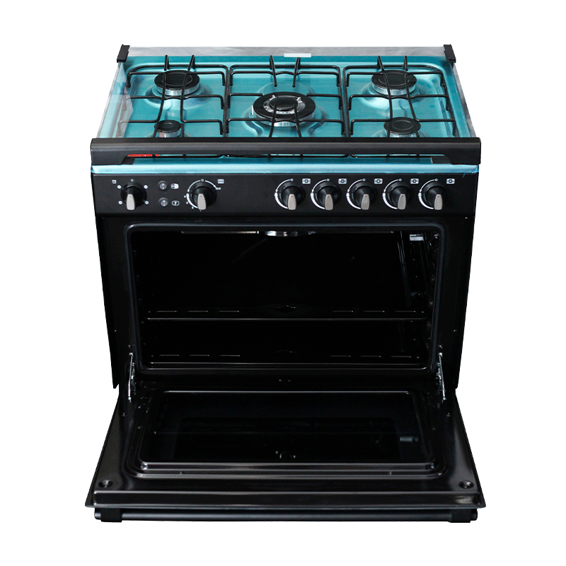 Delta Gas Cookers 80x55cm Gas Oven & Grill 5 Gas Burner Black Silver Steel DGC50B