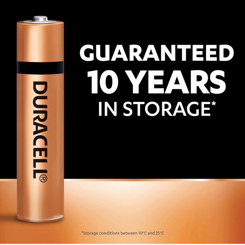 Duracell offers a wide range of batteries to be used in electronics that require reliable power. Duracell Alkaline AAA batteries are alkaline batteries ideal for powering all your everyday devices. Duracell Alkaline AAA alkaline batteries are x2 long-lasting (vs. ordinary Zinc Carbon batteries on average across 2021 IEC tests. Results may vary by device and usage pattern). Duracell Alkaline batteries are available in sizes AA and AAA. These batteries are best suited for low drain regularly used devices, such as TV remotes, flashlights, radios, clocks and any other. They are guaranteed 1 year in a remote (based on Remote Control test protocol and daily usage habits research conducted in India in 2018. Results may vary by device and usage pattern) so you can surf on. Duracell Alkaline AAA batteries stay fresh and powered up to 10 years in ambient storage (Storage conditions between 10°C and 25°C).