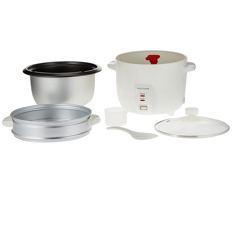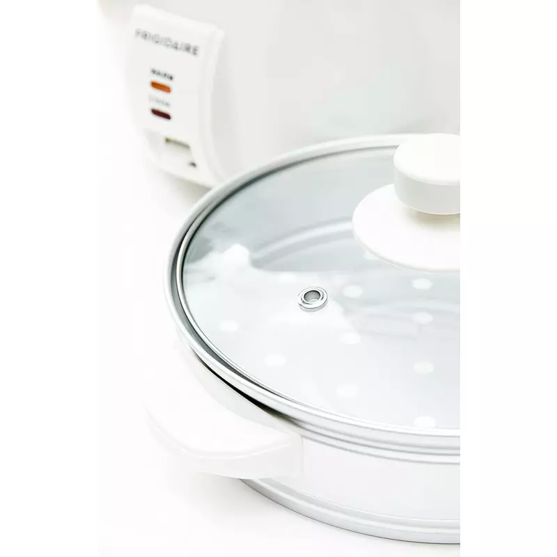 Frigidaire Rice Cooker 1.8L with Steamer 700W Glass Lid, Removable Non-Stick Inner Pot White FD8018S