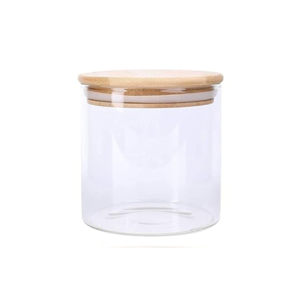 Generic Glass Jar Round with Wooden Lid 10x12cm – Elegant Storage Container for Kitchen & Home R1012(1-19)