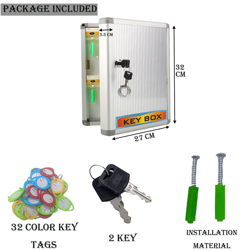 Generic Key Box Holder with Key Lock 32 Keys Aluminium (Keychain Included)