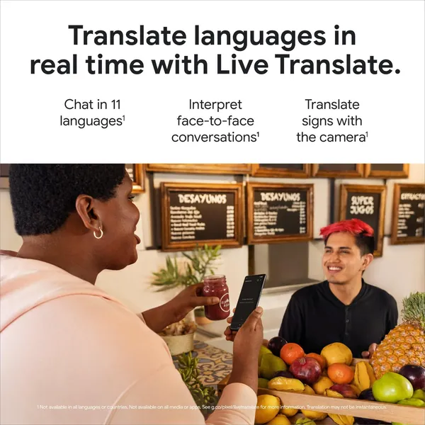3 Not available in all languages or countries. Not available on all media or apps. See g.co/pixel/livetranslate for more information. Translation may not be instantaneous.
