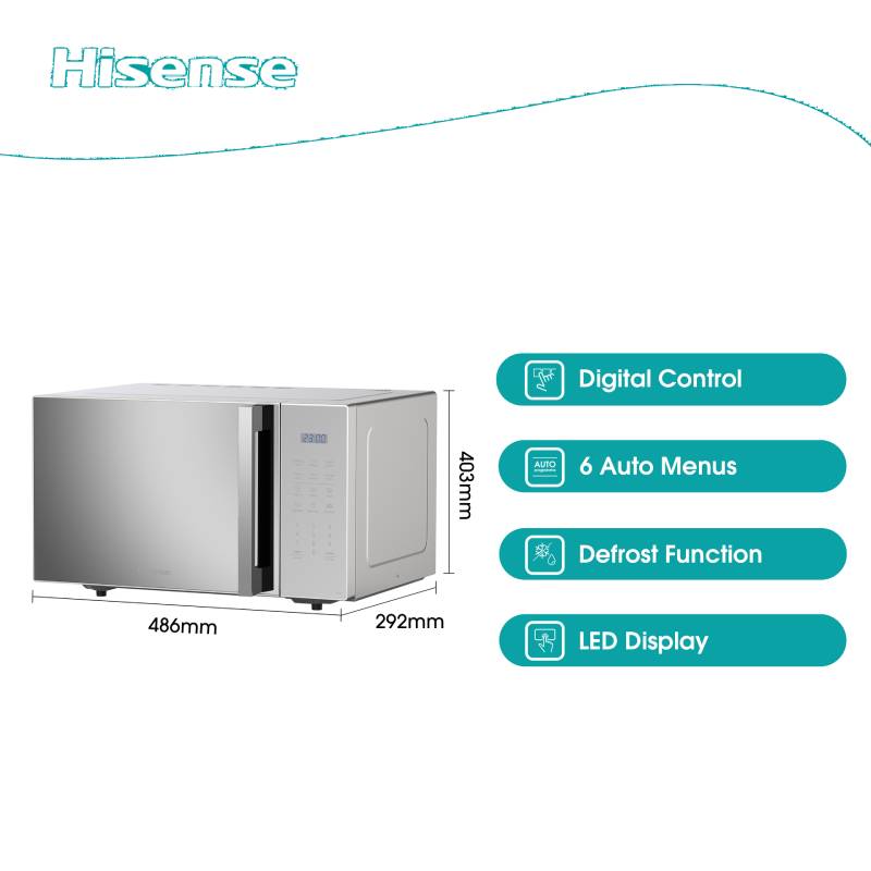 Hisense Microwave 26L 700W Solo Digital, 6 Power Levels, Touch Display, Handle, Mirror Finish H26MOMS5H