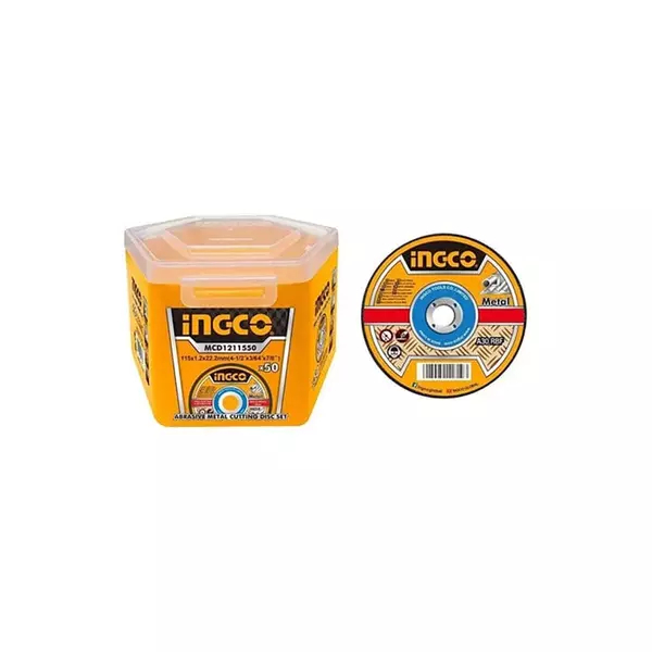 Ingco 50pcs Abrasive Metal Cutting Disc Set 115×1.2×22.2mm MCD1211550