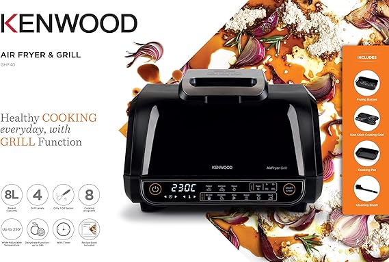 Kenwood Airfryer 8l Digital Touch Screen 4 in 1 Fry, Grill, Roast and Bake 1700w Ghf40.000bk4 Grill Levels, 8 Preset Functions – Grill, Air Crisp, Roast, Bake, Pizza, Reheat, Dehydrate & Manual Function