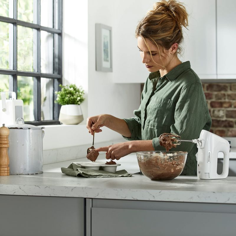 Kenwood Hand Mixer (Electric Whisk) 450W With 5 Speeds + Turbo Button Twin Stainless Steel Kneader And Beater For Mixing Whipping Whisking Kneading HMP30.A0WH