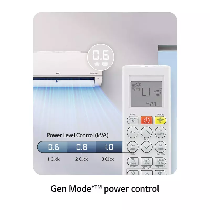 Control your air conditioner using 3 steps of power level in upgraded Gen Mode+™