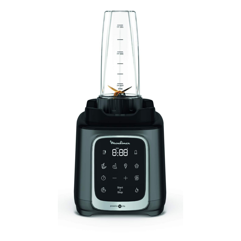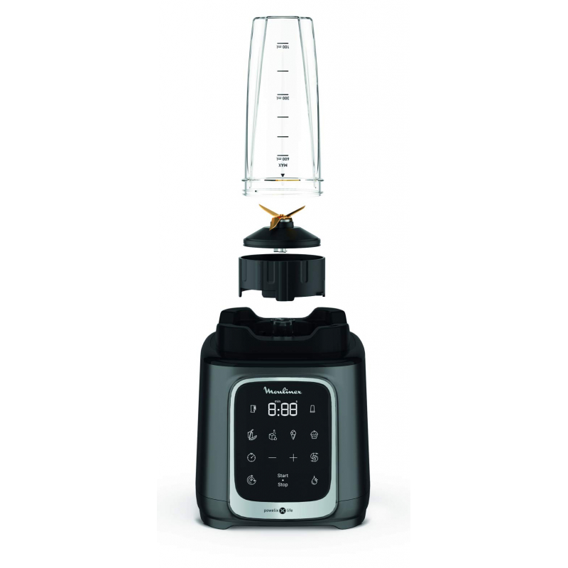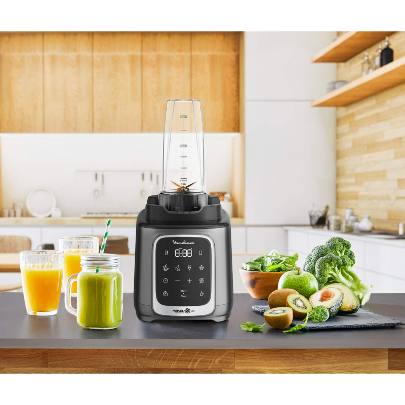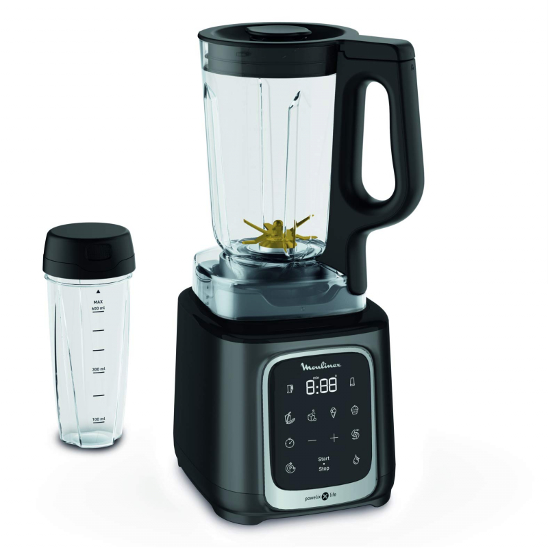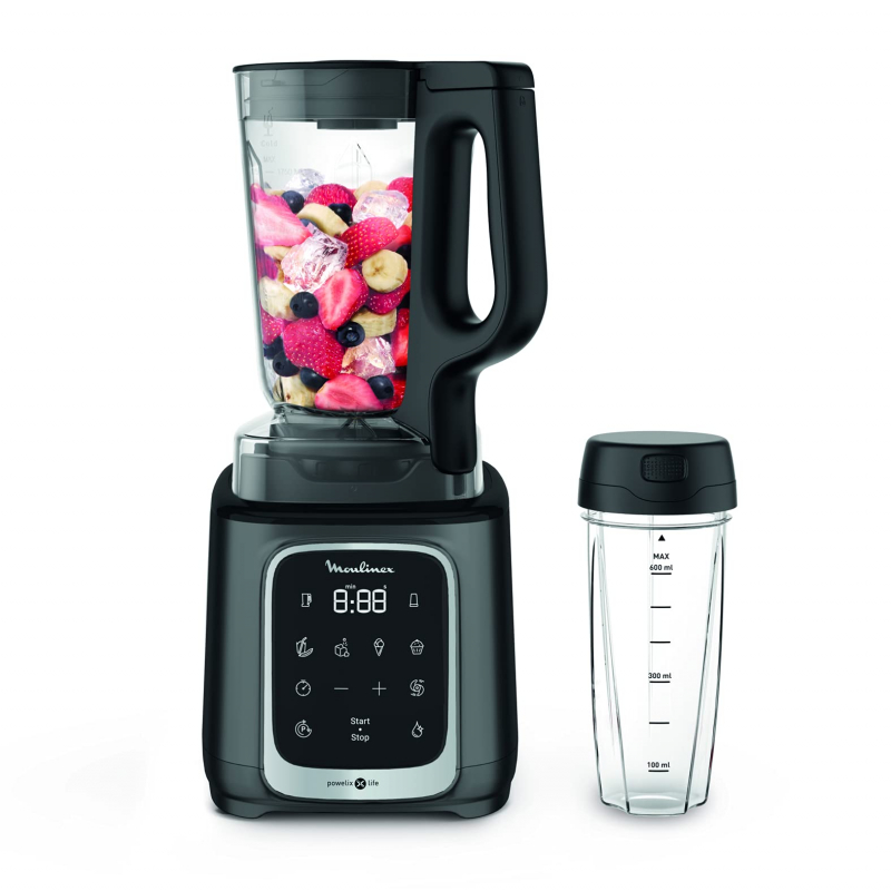 Moulinex Blender 2.6L Tritan Blender Jar with 2 Mills, 1600W, Razor Sharp 6 Blades, Infinity Mix, Digital Touch Control with 5 Automatic Programs, 10 Speed Settings, On the Go Bottle LM91HD27