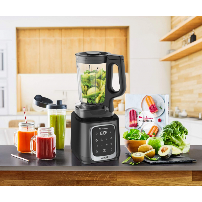 The InfinyMix+ High-Speed Blender offers an endless variety of smoothies and shakes blended to perfection, with an included recipe book to unlock your full creativity. Master over fifty different recipes—with healthy and delicious ideas for any occasion—and achieve ultimate smoothness with 5 easy-to-use automatic programs as well as manual settings.