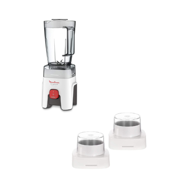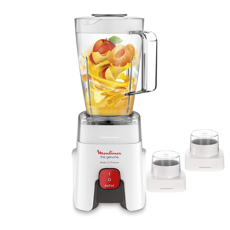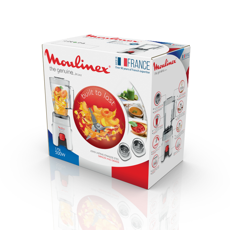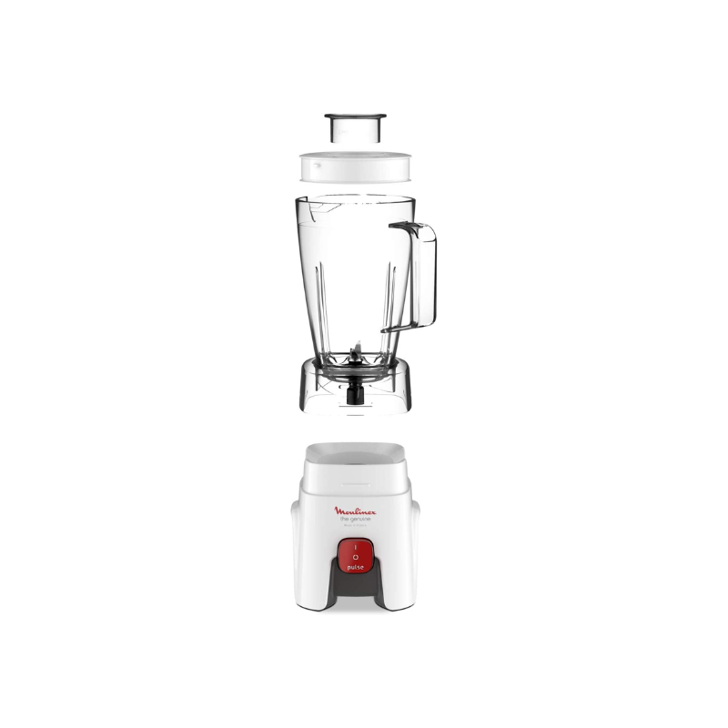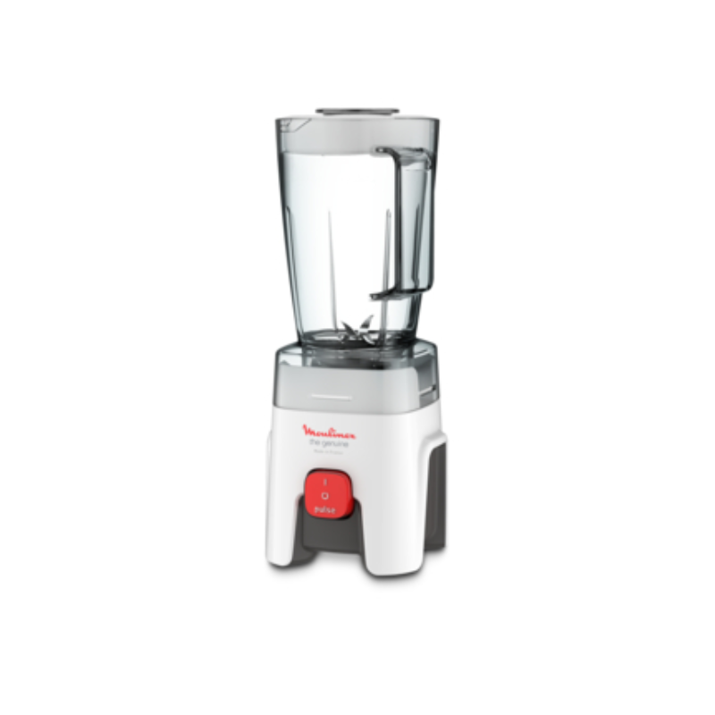 With the Moulinex Genuine kitchen blender, enjoy total convenience and fast, even results on all your blending needs, from juices and smoothies to soups and sauces. Durable, robust and made to last, it’s designed and manufactured in France, for a guarantee of quality and excellence! Single speed plus a practical pulse function Four Fixed blades: Improved food flow and performance. 1.75 L capacity with convenient measurement markings Powerful: 500 W Measuring dosing cup: Perfect to add small quantities while blending.