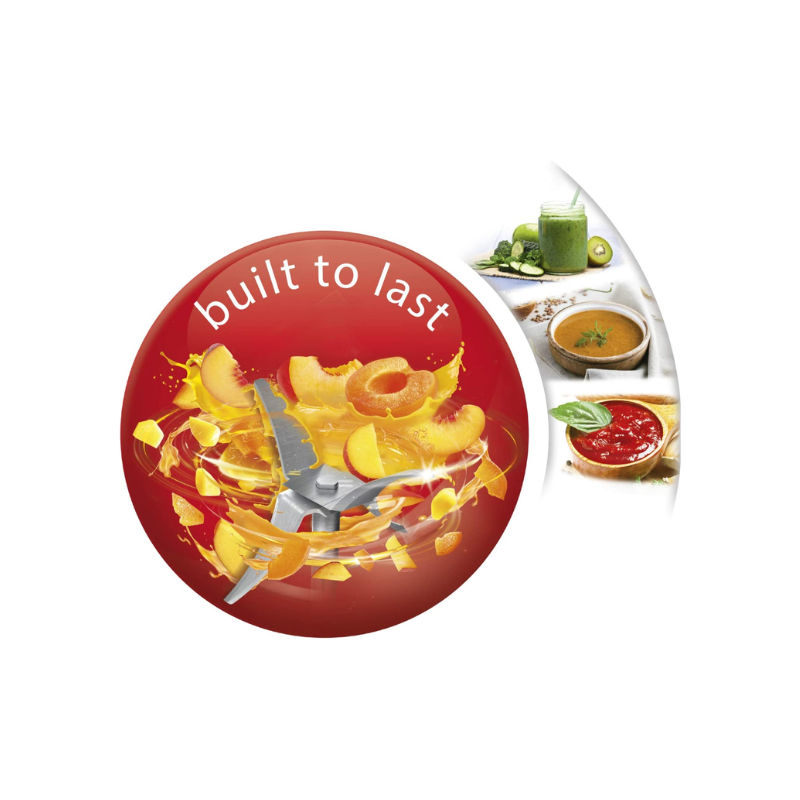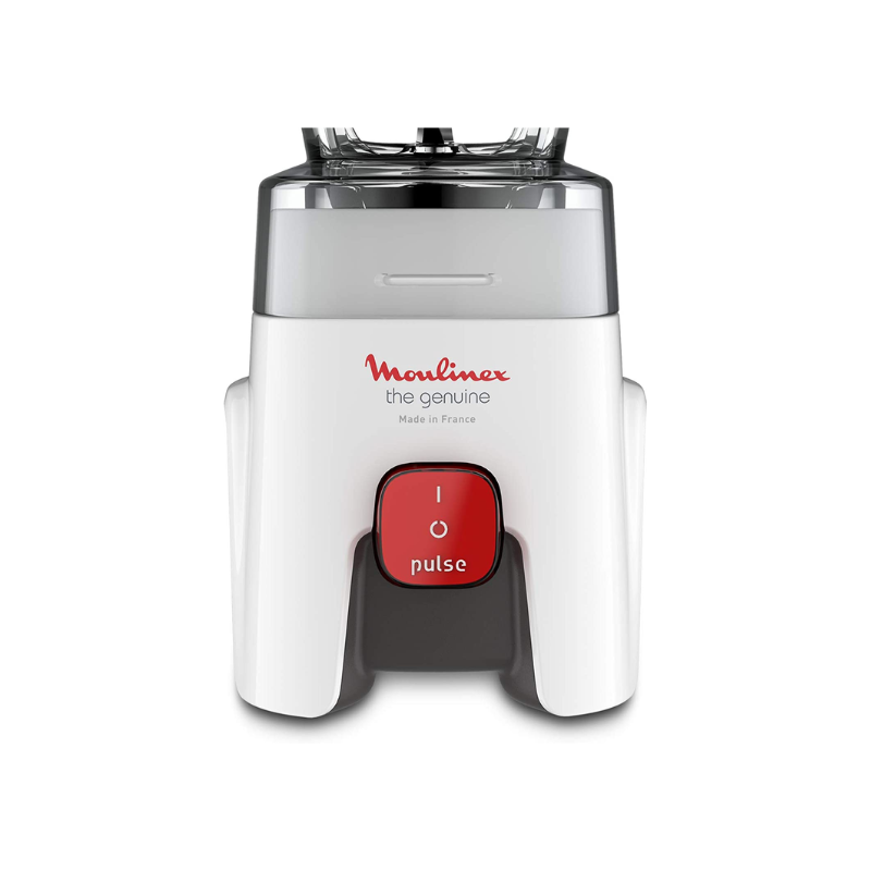 Let Moulinex Genuine be the fast, easy blending companion you need. Featuring robust stainless steel blades with our Zelkrom material, this durable kitchen blender is made in France and built to last. Ideal for preparing juices and smoothies to soups, sauces and more, it comes with stainless steel grinder and grater accessories that are robust, easy to clean and odor-free – perfect for grinding and grating all kinds of ingredients. Its single speed with pulse function ensures fast, even results at the touch of a button, while its four fixed blades provide better food flow and increased performance. Rounding it all off is a generous 1.75 L capacity, perfect for family and friends, a powerful 500 W motor, and an included measuring cup for easy dosing of small quantities. Repairable for 10 years, this blender won’t let you down ! Genuine: your companion blender in your kitchen since 1972!