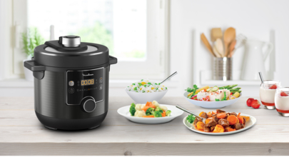 Your brand new solution for delicious meals in no time: With the TURBO CUISINE MAXI Fast Multicooker, Moulinex makes mouth-watering home cooking easier than ever. Whip up delicious, wholesome meals for the entire family with effortless automatic programs from starter to dessert and a pressure cooker mode for perfect results up to 3x faster*. Moulinex’s exclusive spherical bowl technology ensures tender and juicy results, with an intuitive single control knob for a user-friendly appliance. (*Up to 3X faster cooking compared to traditional cookware using gas or electric stove)