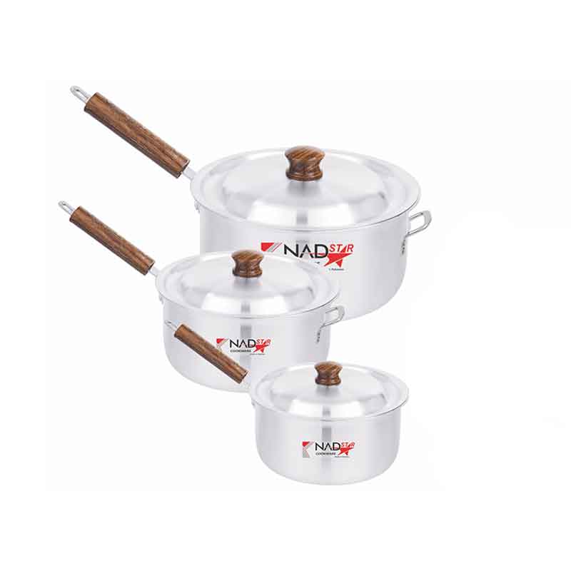 Buy this Nadstar8 Saucepan 3Pcs Set With Lid Smooth Wooden Handle from Wilson Nzuchi. Get it delivered at your doorstep.