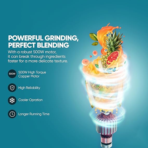 • Powerful performance: Enjoy efficient blending with the 500W motor, which ensures powerful performance to handle various ingredients and blending tasks with ease