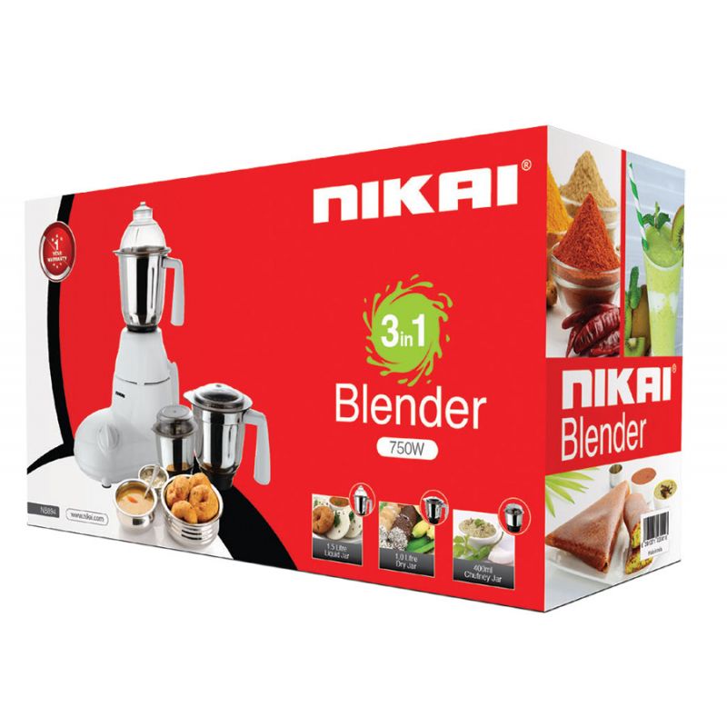 Nikai Blender 750w 3 in 1 Stainless Steel Durable ABS Body 18000RPM Powerful Turbo Motor With Pulse Function NB894