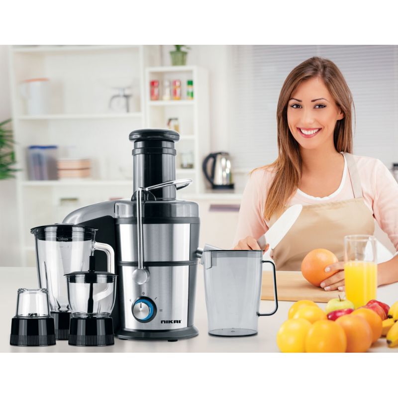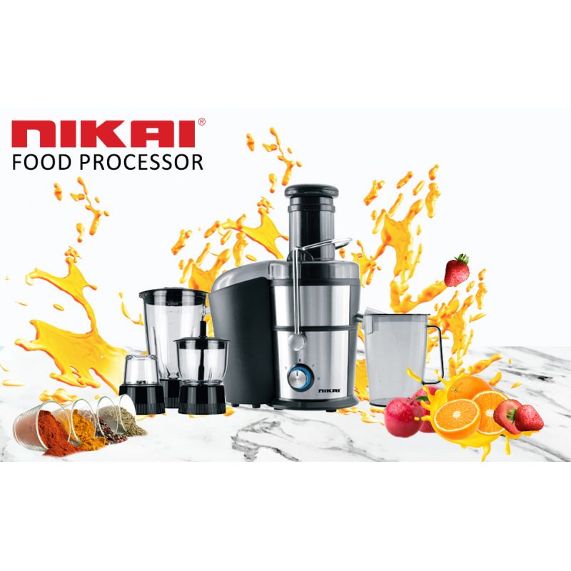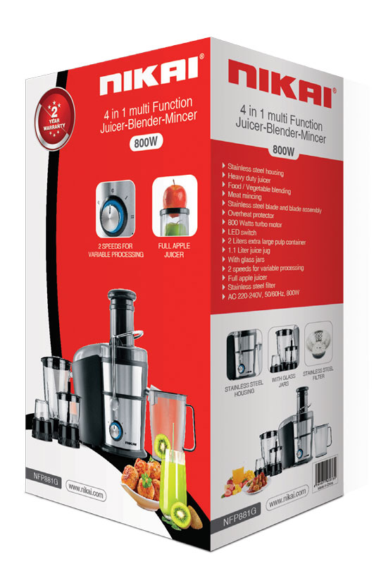 • A food processor with 800W Turbo power motor for 4-in-1 functioning – Juicer-Blender-Mixer and meat mincing. This Nikai appliance can do all your kitchen prep in half the time and at a faster speed.