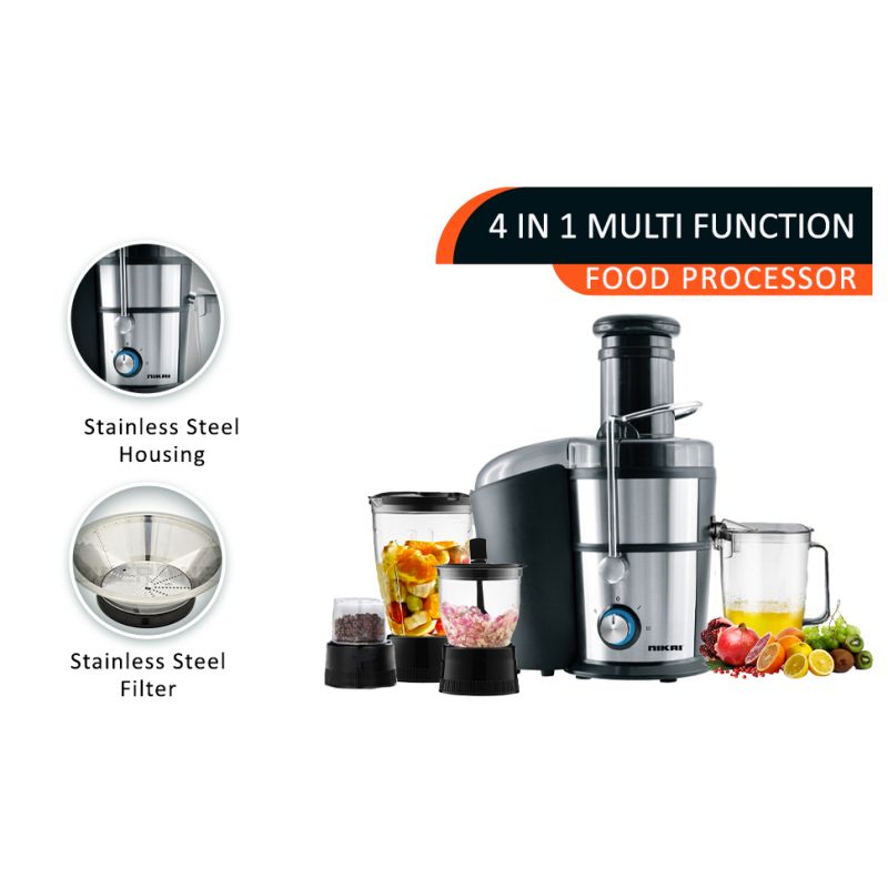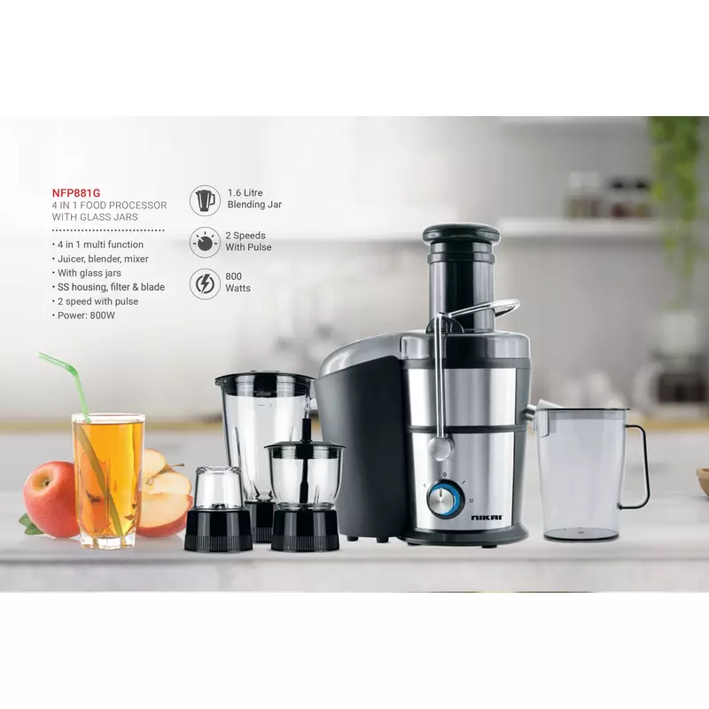 Nikai Juicer Extractor 2l 4 in 1 Juicer Blender Mixer Grinder 800W NFP881G 2 Speed With Pulse Function With Glass Jars Stainless Steel Housing Filter And Blade