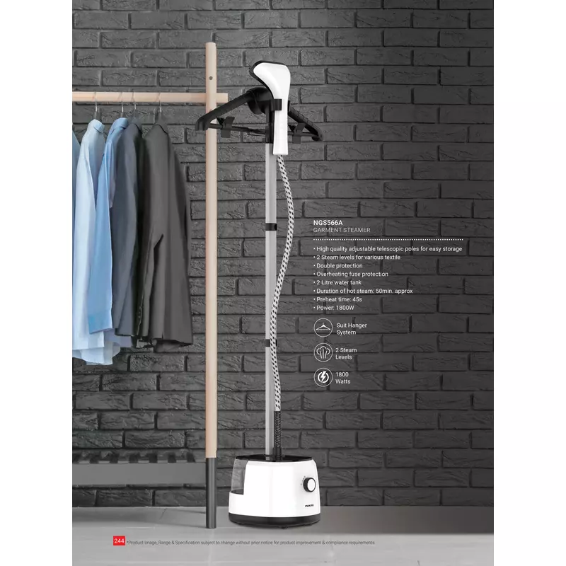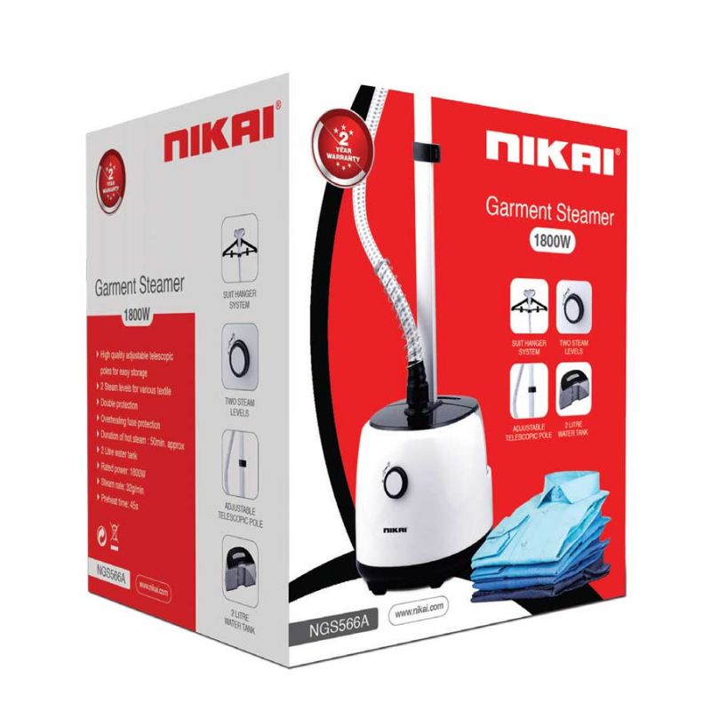 Nikai Garment Steamer 1.8L Tank Suit Hanger 1600W NGS566A Overheat Fuse Protection 2 Steam Levels Adjustable Telescopic Poles