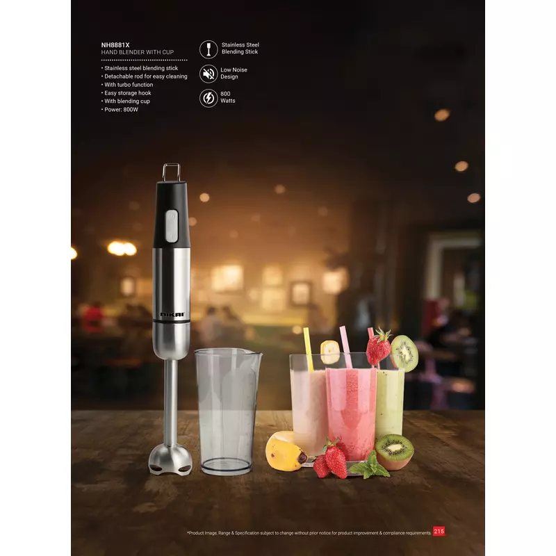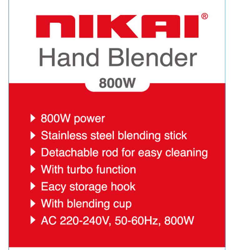 Nikai Hand Blender 600Ml With Cup Stainless Steel Blending Stick 800W Nh8881X Detachable Rod With Blending Cup Easy Storage Hook With Turbo Function