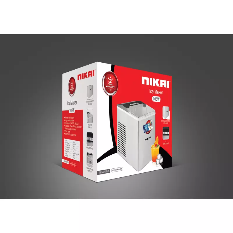 Shop online for the high-quality, affordable Nikai Ice Maker 1.8L Tank 9 Ice Cubes Per Cycle 12KG Ice Bin Storage 105W NIM2412A Stainless Steel Housing and Plastic Top Lid With Large Viewing Window. Discover seamless online shopping in Tanzania with Kariakoo Shop, Explore a wide range of premium Nikai Ice Makers at unbeatable prices. Enjoy the convenience of free delivery on select products in Dar es Salaam. Don’t miss out on smart shopping and big savings with KariakooShop, Karibu sana—start your hassle-free shopping experience today