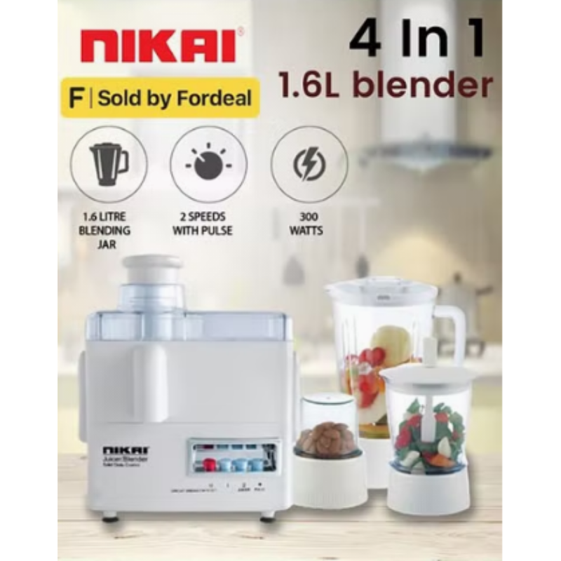 Shop online for the high-quality, affordable Nikai Juicer Extractor 1.6L 4 in 1 Juicer Blender Meat Chopper and Grinder 300W NFP1724N 2 Speed With Pulse Function Powerful Motor With Thermostat Stainless Steel Blades. Discover seamless online shopping in Tanzania with Kariakoo Shop, Explore a wide range of premium Nikai Blenders at unbeatable prices. Enjoy the convenience of free delivery on select products in Dar es Salaam. Don’t miss out on smart shopping and big savings with KariakooShop, Karibu sana—start your hassle-free shopping experience today