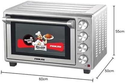 Nikai electrical appliances have the best build, using the highest quality materials. Ovens make cooking a faster experience. Be it a small dinner or baking a dessert, the appliance can do it all. The additional cooking accessories make experimenting with new dishes fun yet simple. They make cooking stress-free and easy. With a combination of high technology and extreme style, Nikai ovens are the best addition to any cooking space. The appliance has stainless steel heating elements as they heat up fast, four knobs for control, a timer of 60 minutes with a bell ringer, a temperature control, stainless steel housing and panel, a double glass door for insulation, and inside lamp for illumination in the oven interior, a rotisserie fork to cook your meats evenly, a convection fan for cooking evenly, and a keep-warm function.