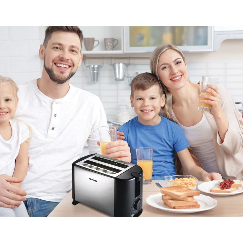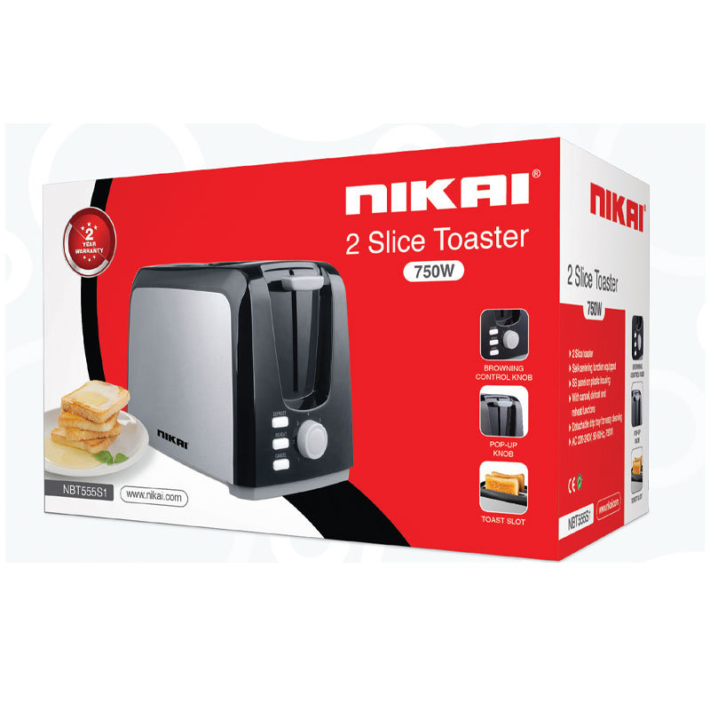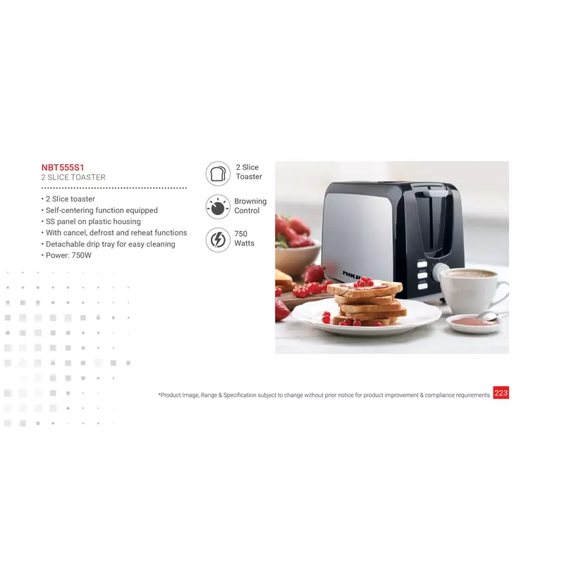 Nikai Toaster 2 Slice Browning Control 750W NBT555S1 Stainless Steel Panel On Plastic Housing With Cancel, Defrost And Reheat Functions Detachable Drip Tray