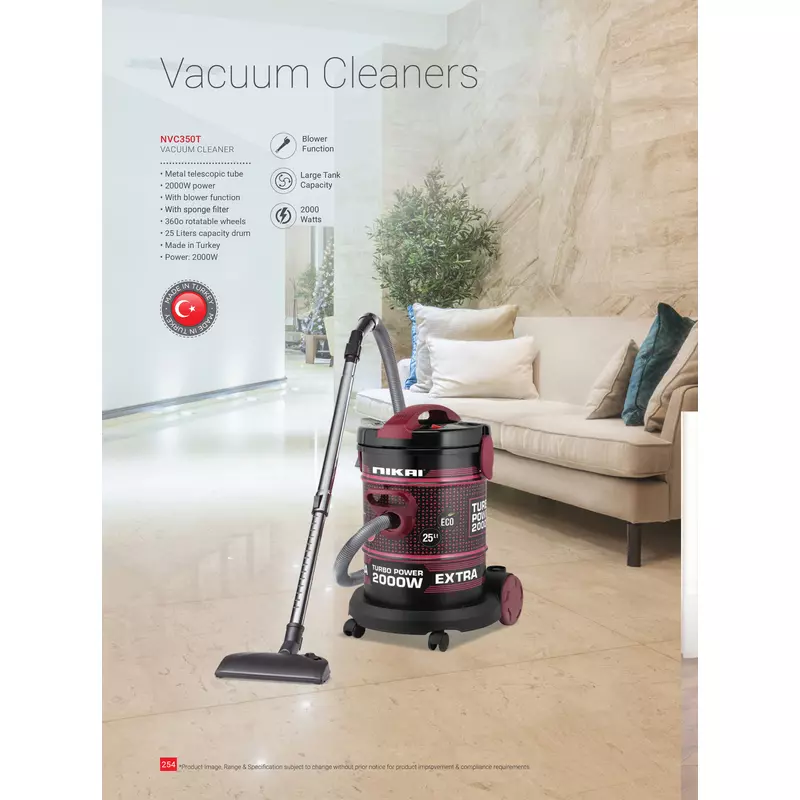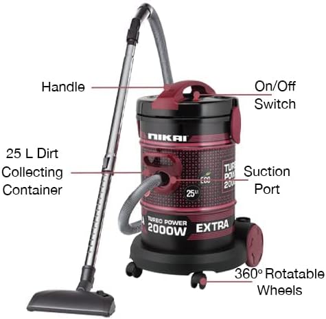 Nikai Vacuum Cleaner 25l Drum with Blower Function 2000w NVC350T Metal Telescopic Tube Large Tank Capacity Rotatable Wheels With Sponge Filter