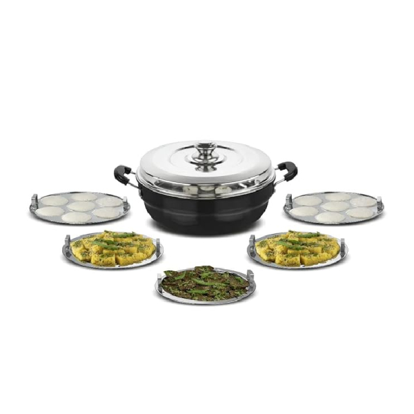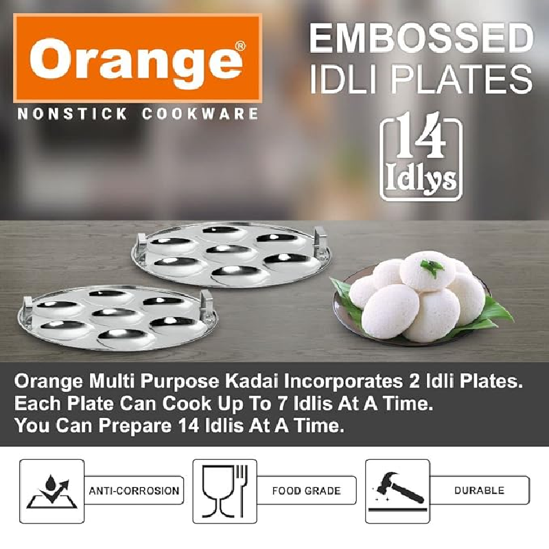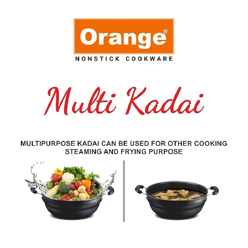 Orange All in One Multi Kadai with Idli, Dhokla & Patra Steamer Plates OHAC128