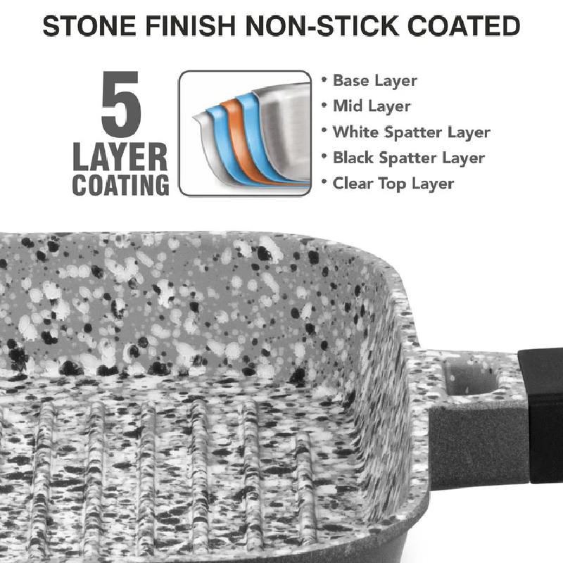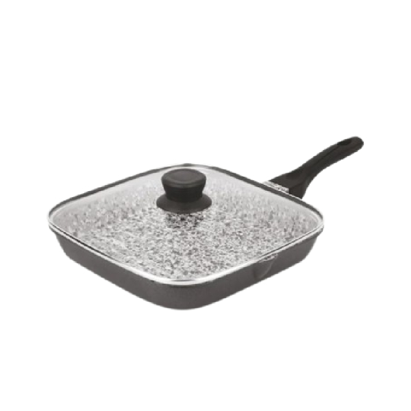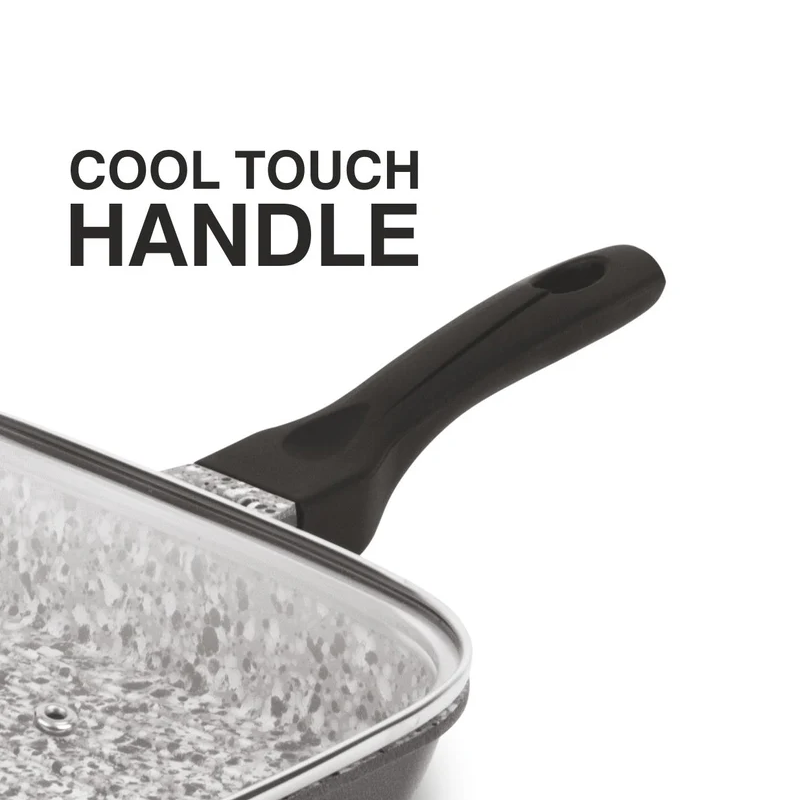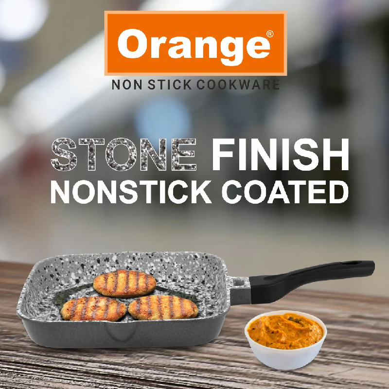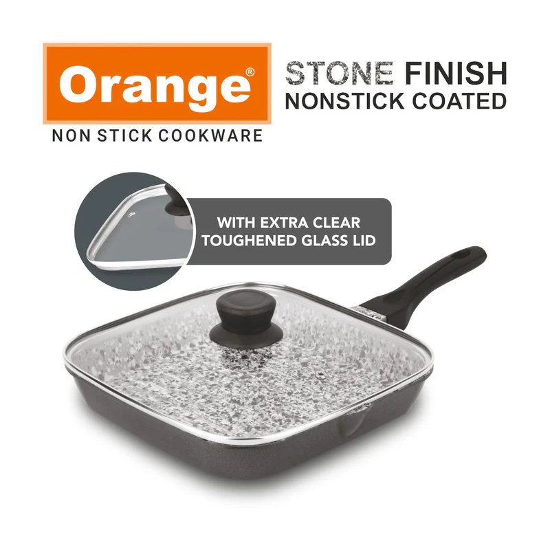 Orange Grill Pan Stone Finish 24cm Non-Stick with Glass Lid, 5 Layer Coating ONSC397