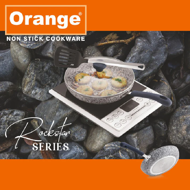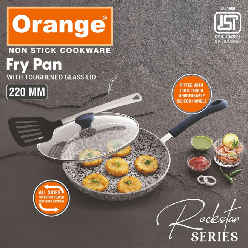 Be the first to review “Orange Non-Stick Fry Pan Stone Finish 24cm with Glass Lid Rockstar Series ONSC405” Cancel reply