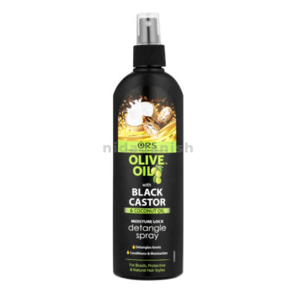 ORS Olive Black Olive Castor Spray is designed to detangle hair. Made With Black Castor and coconut oil, it locks moisture into your hair by conditioning it and leaving it tangle-free.