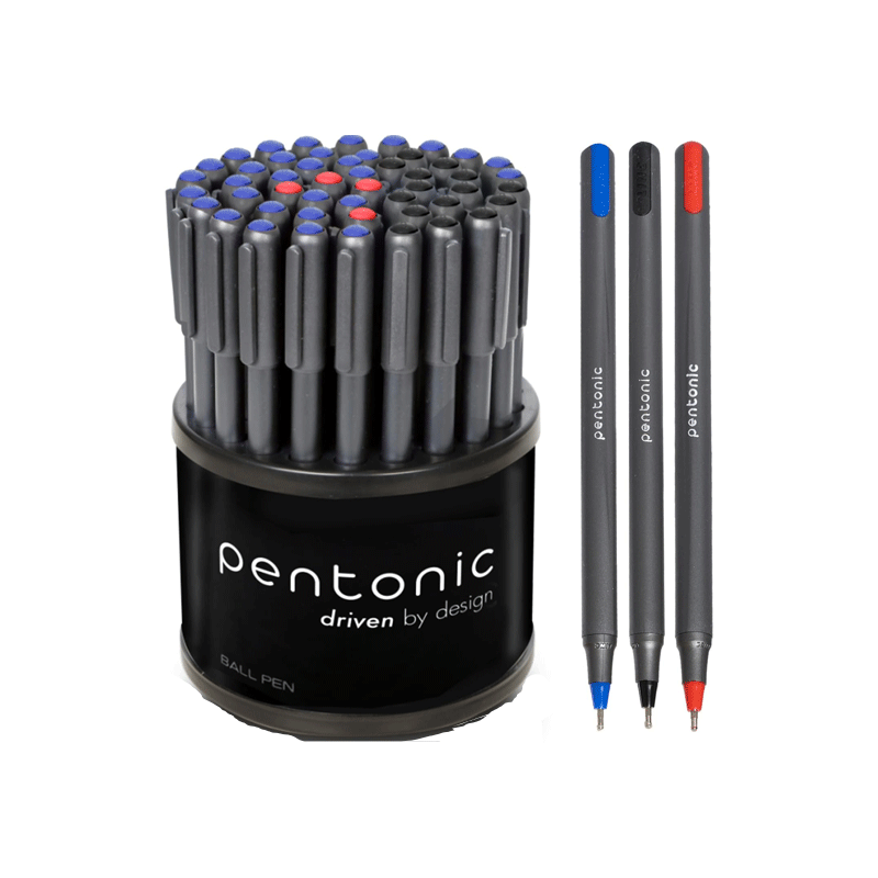 Pentonic Ballpen Assorted Dispenser, Low Viscosity Ink Allows The Rolling Ball to Glide Across All Kinds of Paper Surfaces Without Smearing, Sleek Charcoal Gray Finish 50pcs PBPA50S