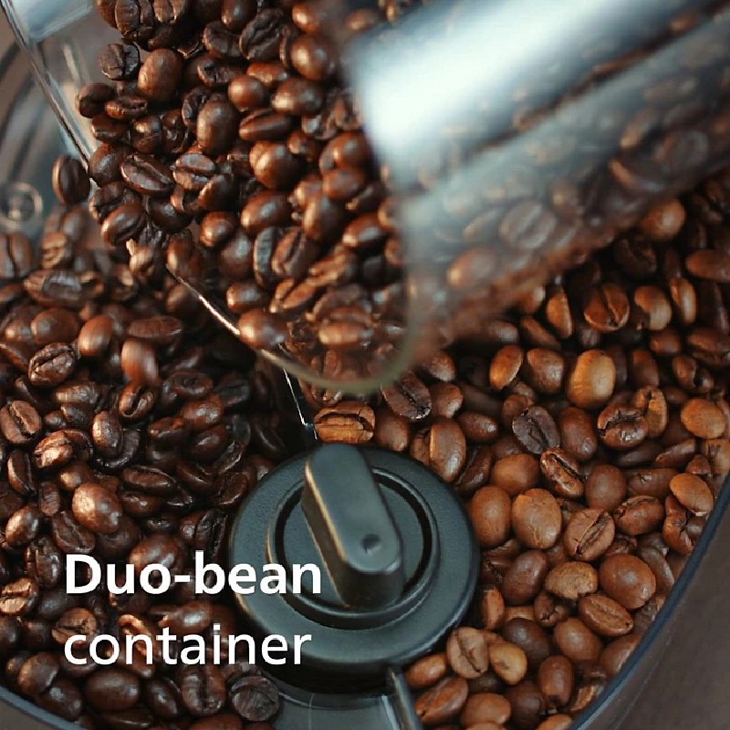 Detachable duo-bean container with Aroma Seal lets you store and mix two different blends together. You also switch between decaf and normal. It is easy to clean – also thanks to included brush – and easy to refill.
