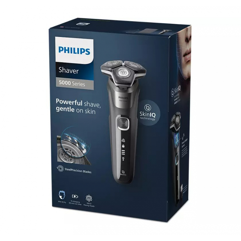 The Philips Series 5000 delivers a powerful shave, cutting now even more hair per stroke. Equipped with advanced SkinIQ technology, the shaver senses and adapts to your hair density, for improved skin comfort.