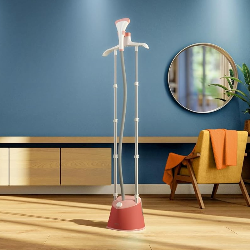The double poles can be adjusted to the desired height to hang your garments and steam them comfortably.