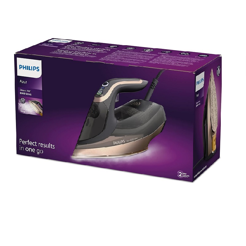 The Philips Azur 8000 Series Steam Iron 3000W DST8041 Black is a powerful and efficient iron that will make your ironing tasks a breeze. With its 3000W power, it heats up quickly and delivers a consistent steam output for fast and effective wrinkle removal. The iron features a durable soleplate that glides smoothly over fabrics, and the advanced steam technology ensures deep penetration into the fibres for thorough ironing. The iron also has a large water tank capacity, so you can iron for longer without the need for frequent refills. Its sleek black design adds a touch of elegance to your ironing routine.