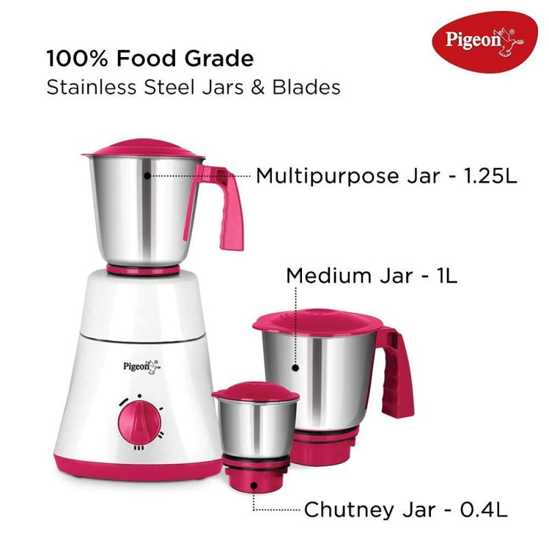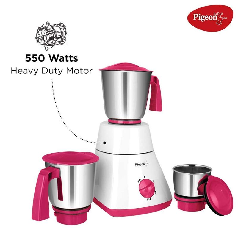 Pigeon Mixer Grinder 550w ABS 10500RPM with 3 Stainless Steel Jars for Dry Grinding & Wet Grinding Classic Pro