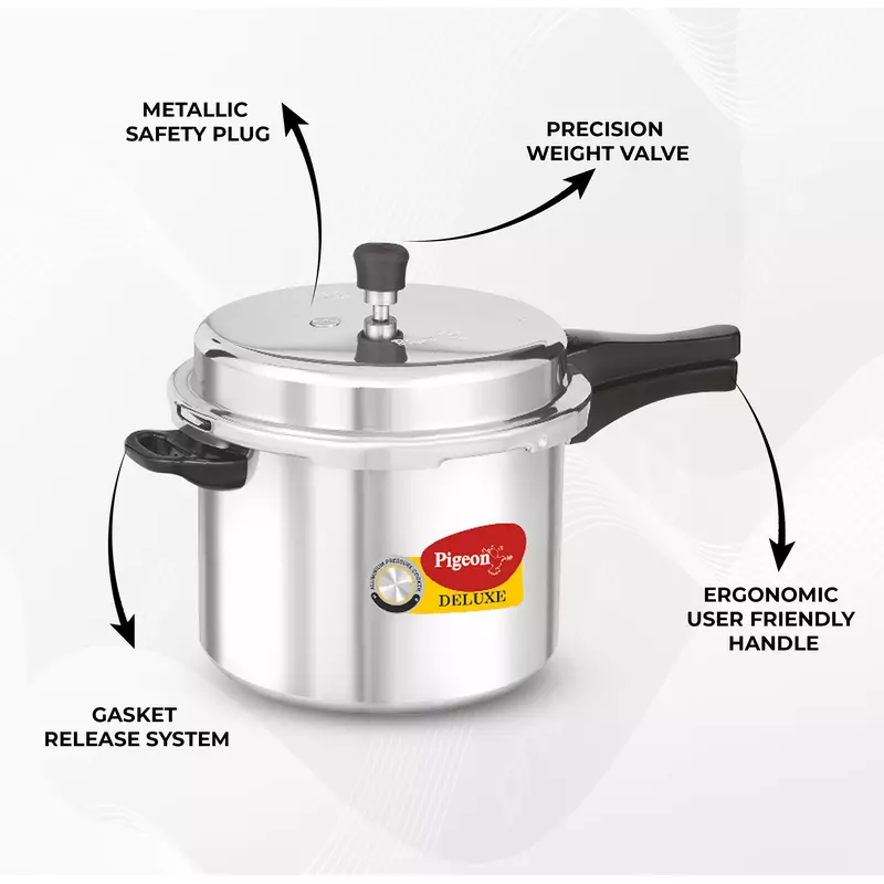 Pigeon Pressure Cooker 7.5l Deluxe Outer Lid Aluminium Sap 104 – Ergonomic Sturdy Handle Thermal Efficiency Special Alloy Safety Plug