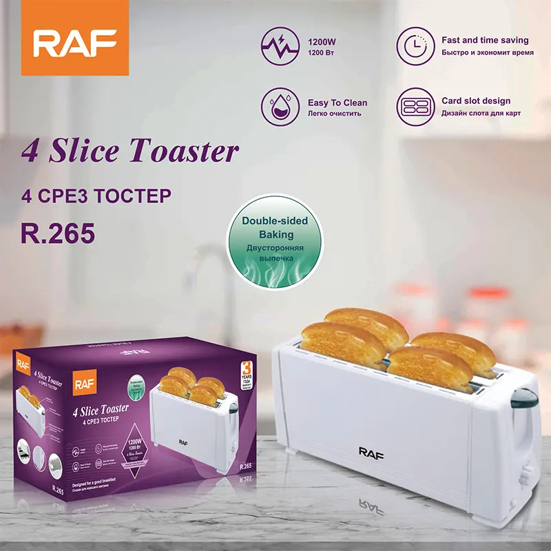 Be the first to review “RAF Bread Toaster 4 Slice 1200W, Double Sided Baking, Card Slot Design R.265”